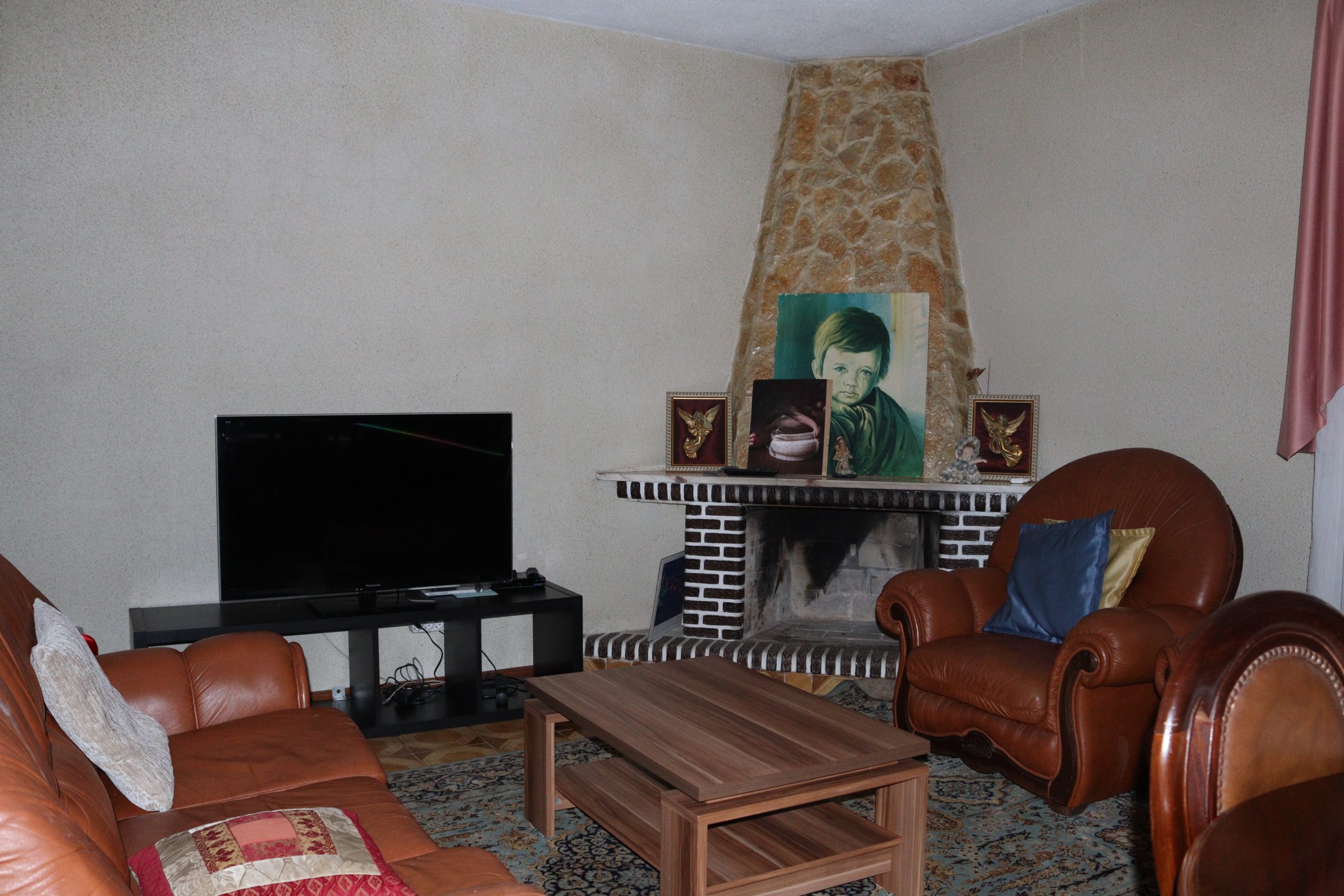 • O outro T3 mantém o charme tradicional, com duas lareiras — uma na cozinha e outra na sala — criando um ambiente acolhedor e familiar.